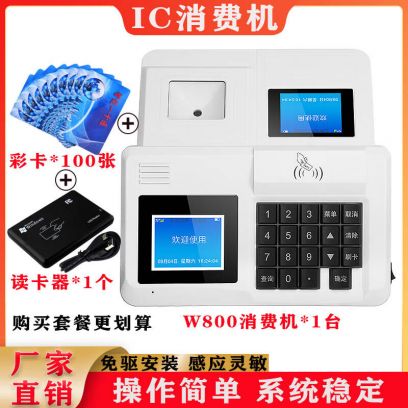 食堂刷卡机消费机餐厅刷卡机食堂刷卡系统 饭卡机 充值消费一体机 W800消费机+100张卡+发卡器, W800扫码IC消费机