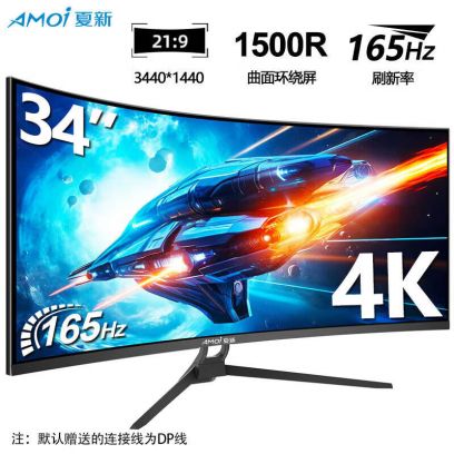 夏新(Amoi)34英寸4K带鱼屏高刷电竞曲面显示器游戏台式液晶屏幕21:9宽屏升降设计炒股办公分屏笔记本外接副屏 34英寸带鱼屏【4K165Hz】曲面 黑色, 34英寸带鱼屏【4K60Hz】可升降直面 黑色