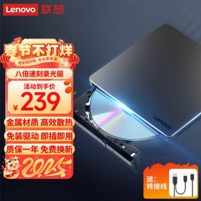 联想(Lenovo)8倍速 铝合金材质 Type-C/USB外置光驱 DVD外置刻录机 移动光驱 笔记本电脑光驱外置读刻一体 DB85, 【铝合金材质】Type-C+USB双接口
