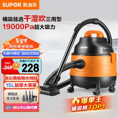 苏泊尔(SUPOR)桶式吸尘器家用强劲大吸力工业吸尘器开荒干湿吹吸尘机15L大容量EVCB-70A, 【一键收线】1400W干湿吹15L