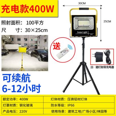 大团小圆led工作落地灯维修立式照明汽修车间工地场地施工移动射灯支架 400W【6-12h】红蓝警示+2米支架, 50W插电款+2米支架+4米插头线【照约50m】