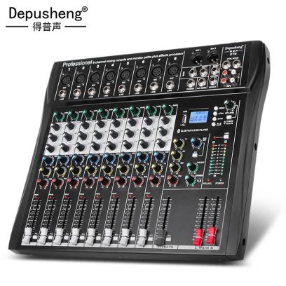depushengDT8 专业8路调音台舞台演出视频会议培训录音直播唱歌混响U盘蓝牙MP3播放多路控制户外带效果均衡 DT8专业8路调音台, DT8专业8路调音台