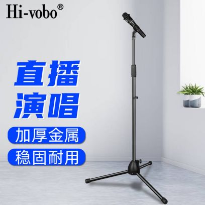 Hi-vobo 麦克风话筒落地支架金属三脚架专业舞台K歌麦架压杆伸缩开会演讲加重直播户外 单话筒落地支架, 单话筒落地支架