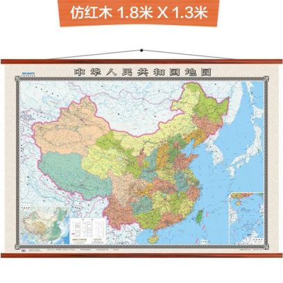 全新配色整张无拼缝地图挂图 中国地图挂图 大尺寸约1.8米*1.3米 高档仿红木杆 办公室书房客厅挂图, 1.5*1.1米 精装商务