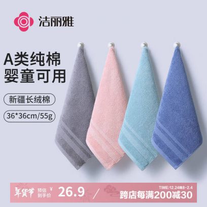 【A类长绒棉】抗菌方巾4条