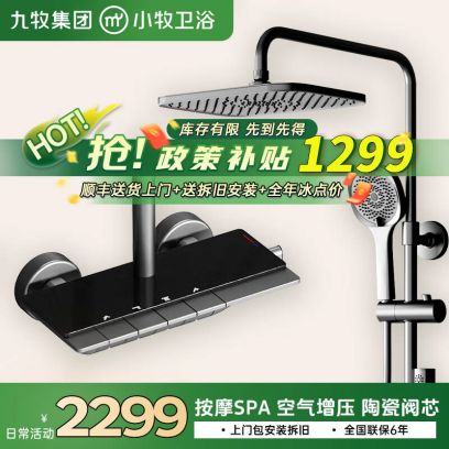 九牧(JOMOO)花洒淋浴套装小牧卫浴钢琴键增压自动除垢花洒全套置物淋浴器 满天星系列花洒【枪灰色】 送货上门, 满天星系列花洒【闪银色】