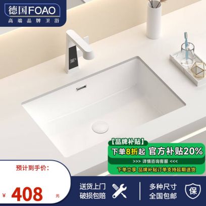FOAO 德国大容量平底台下盆卫生间方形洗脸盆石下盆陶瓷嵌入式洗手盆 24寸单盆(600*400*180), 26寸单盆(710*400*180)