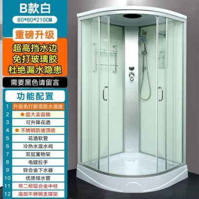 博朗晴淋浴房洗澡家用一体式封闭式沐浴房整体浴室淋浴房滑轮玻璃扇形 B款80x80【全系标配美容镜】, B款100cm【防水升级无需打胶】
