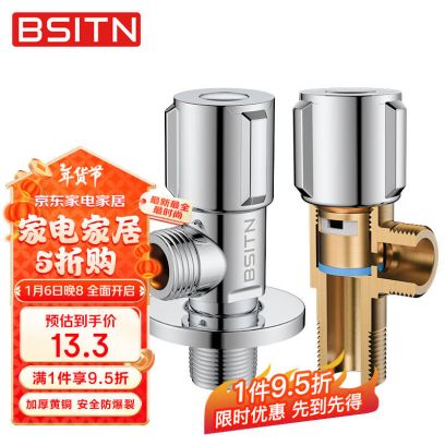 BSITN黄铜角阀加厚4分接口八字阀冷热水快开三角阀冷热通用止水阀B503, *【10w+热销】加厚冷热铜角阀