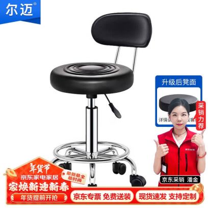 尔迈 高校实验室教学实验椅可旋转升降椅工作台配套靠背实验凳子 滑轮, 黑色皮面 滑轮款 无扶手