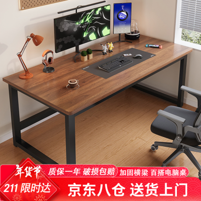 新颜值主义电脑桌台式电竞桌书桌家用学习桌子办公游戏桌简约长条桌子ZYZ03 胡桃黑架单桌【80*60*74】, 木纹白架单桌【100*60*74】