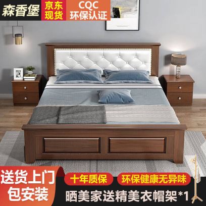 森香堡(SenXiangBao) 实木床现代简约软包床单人床家用欧式卧室婚床经济型双人主卧床 胡桃色裸床【升级加厚】 1200mm*2000mm实木床, 胡桃+双抽+床头柜*1【多加立柱】
