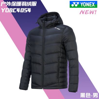 YONEX2024秋冬新YONEX尤尼克斯yy羽绒服YOBC4054CR男女保暖羽毛球连帽 男款 YOBC4054CR 黑色 L, 男款 YOBC4054CR 黑色