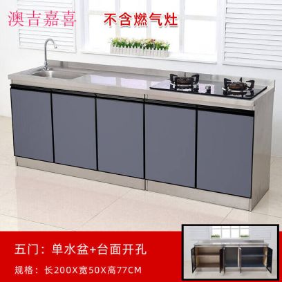 澳吉嘉喜2米不锈钢厨房橱柜灶台柜一体柜组合家用储物碗柜整体简易水槽柜 200*50右开孔左单盆, 180*50平面柜