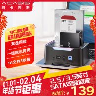 阿卡西斯(acasis)硬盘底座2.5/3.5英寸笔记本台式SATA串口SSD固态移动机械双盘位外置外接硬盘盒子拷贝机EC-6104, 【双盘位】4种RAID+可读48TB