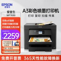爱普生(EPSON)WF7830/7845彩色A3喷墨打印机无线自动双面打印复印扫描传真多功能一体机办公7848企业商用 WF7830【无线四合一+A3自动双面】, WF7830【无线四合一+A3自动双面】