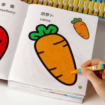 莫肖尔儿童绘画本3-6岁幼儿园推荐画画本宝宝涂色书2-涂鸦填色绘本图画 人物+动物96页 12色油画棒, 水果+蔬菜+动物+人物+植物+交通