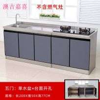 澳吉嘉喜2米不锈钢厨房橱柜灶台柜一体柜组合家用储物碗柜整体简易水槽柜 200*50右开孔左单盆, 180*50平面柜