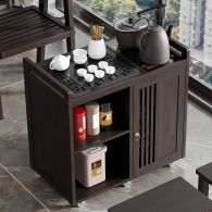 皇威马 移动茶桌家用小茶台竹木茶车茶几茶具套装自动烧水壶一体茶水柜 65长单门, 65长单门