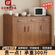 立太(LEADTEK)实木色餐边柜一体靠墙柜子储物柜茶水柜客厅收纳柜边柜厨房置物柜 【护栏款】120cm三门三抽深胡桃, 【护栏款】60cm两门一抽深胡桃