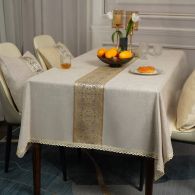 梦中情人中式桌布防水轻奢高级感长方形餐桌台布欧式高档布艺茶几布餐桌布 索丽德镶织带桌布麻灰色 137*200cm(适合1.4-1.5米长桌), 索丽德镶织带桌布蓝灰色