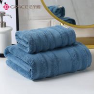 洁丽雅纯棉毛巾浴巾两件套 A类长绒棉洗脸洗澡柔软吸水速干大面巾 蓝色, 【A类长绒棉】深棕+深灰 2条